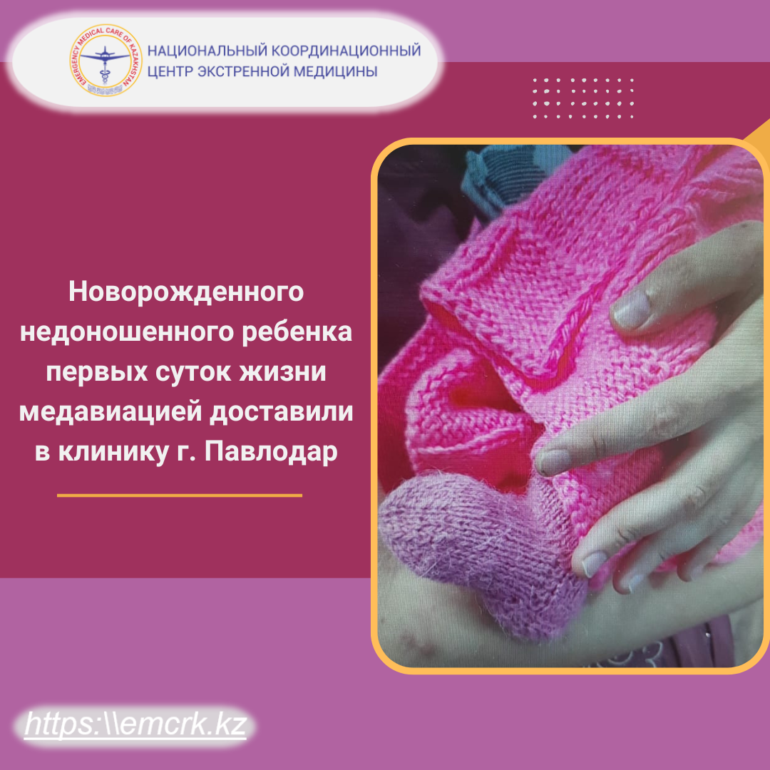 Учитывая тяжелое состояние недоношенного малыша, обусловленное зависимостью от кислорода, дыхательные нарушения, морфологическую и функциональную незрелость, 22 июля маленького пациента транспортировали на самолете в областной перинатальный центр г. Павлодар, где ему будет обеспечено соответствующее лечение и выхаживание.