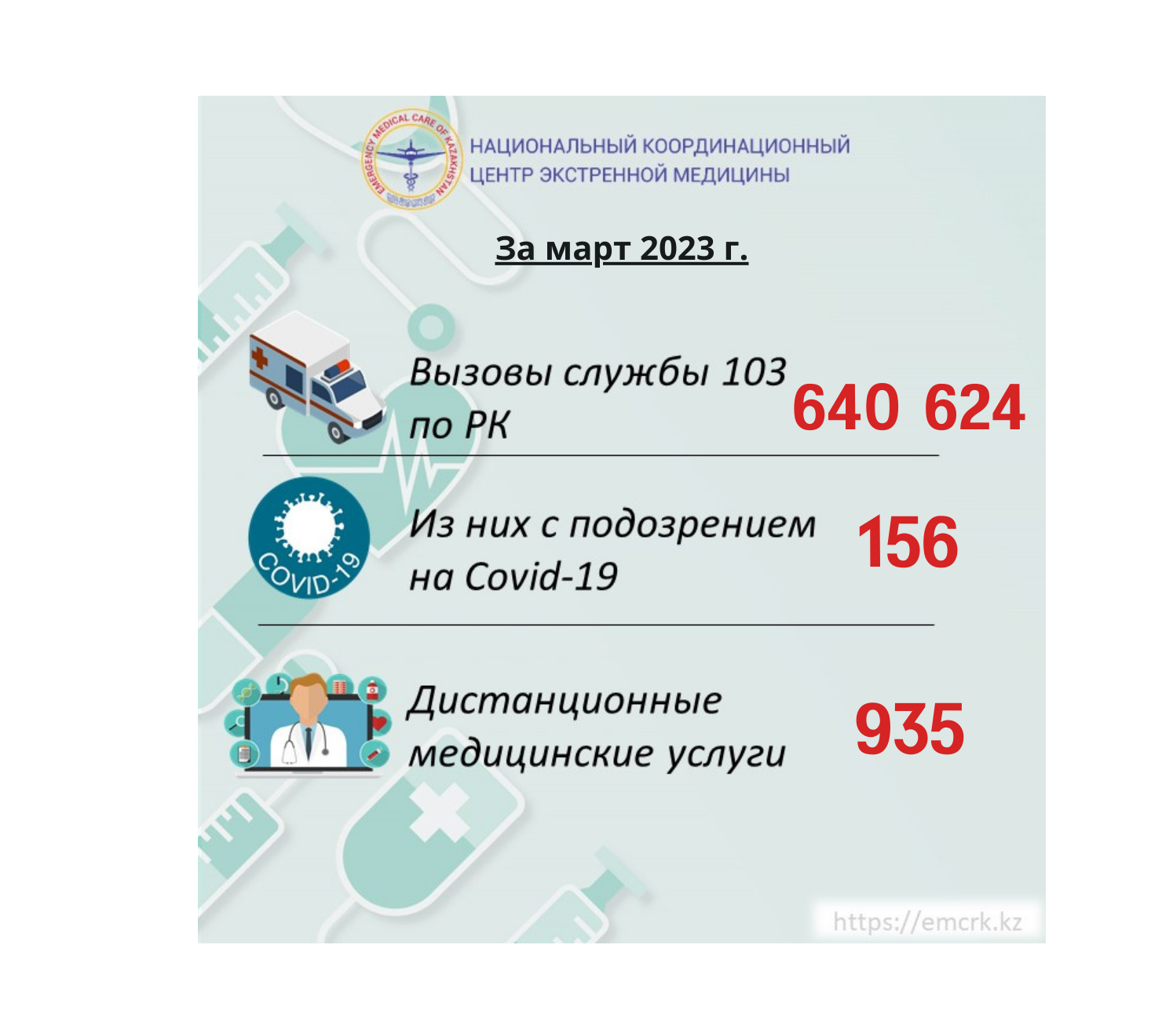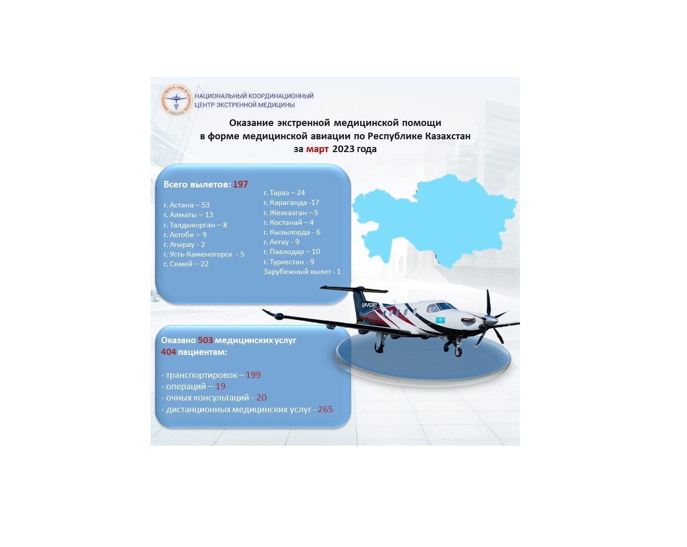 Оказание экстренной медицинской помощи в форме медицинской авиации по Республике Казахстан за март 2023 года