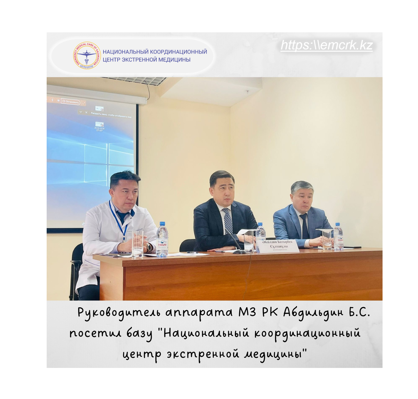 Руководитель аппарата МЗ РК Б.С. Абдильдин посетил базу "Национальный координационный центр экстренной медицины"