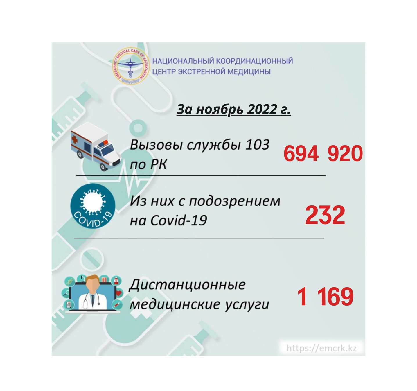 Информация по вызовам службы скорой медицинской помощи, в т.ч. КВИ, а также о дистанционных медицинских услугах