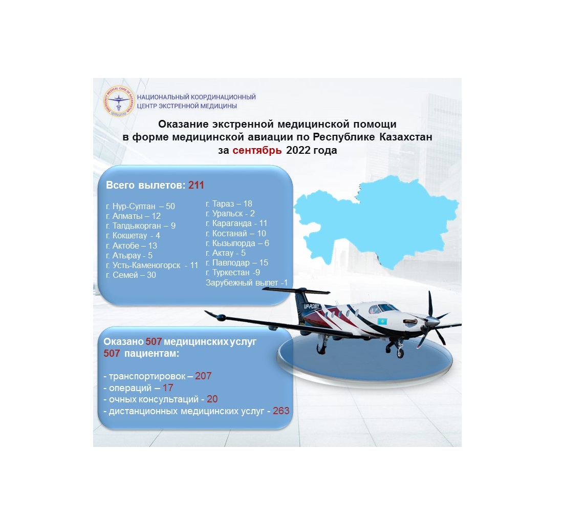 Оказание экстренной медицинской помощи в форме медицинской авиации по Республике Казахстан за сентябрь 2022 года