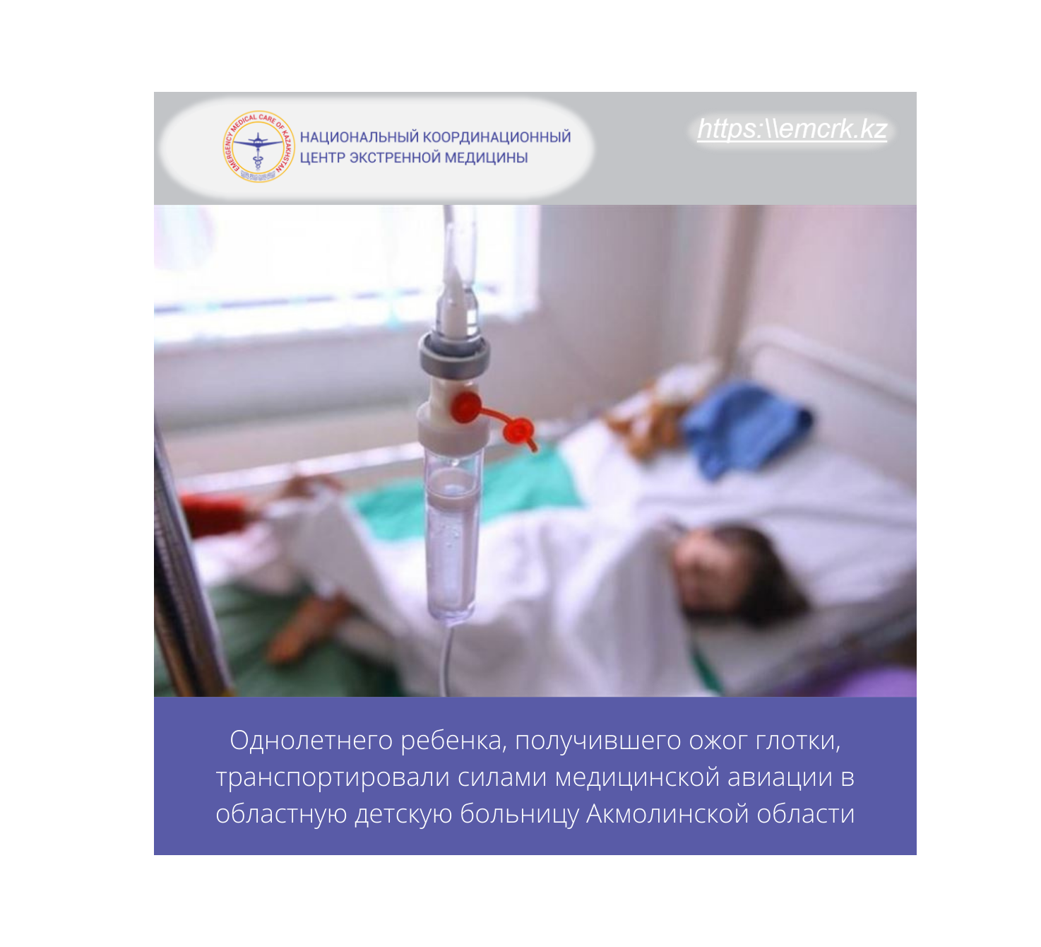 Однолетнего ребенка, получившего ожог глотки, транспортировали силами медицинской авиации в областную детскую больницу Акмолинской области
