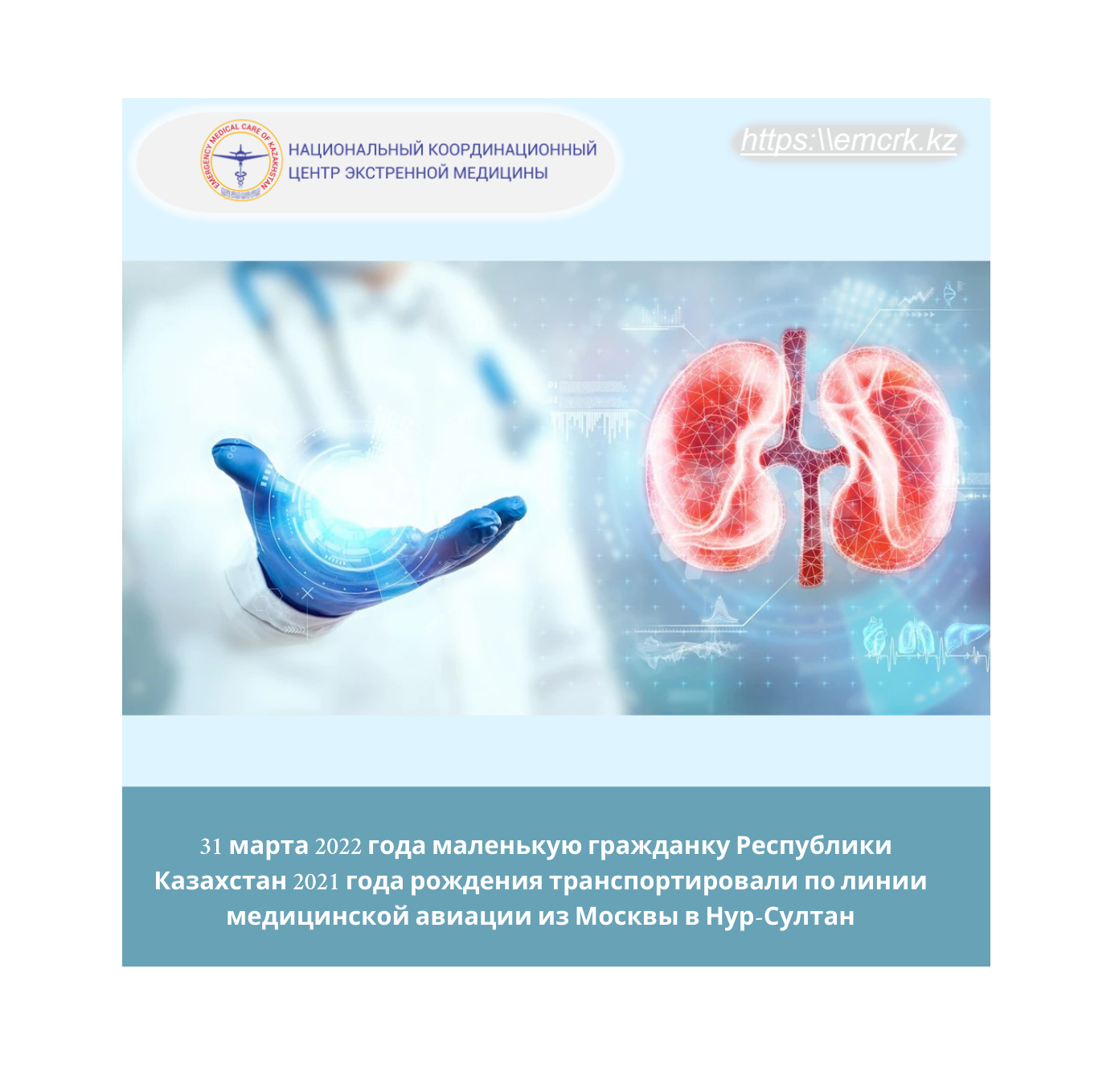 31 марта 2022 года маленькую гражданку Республики Казахстан 2021 года рождения транспортировали по линии медицинской авиации из Москвы в Нур-Султан