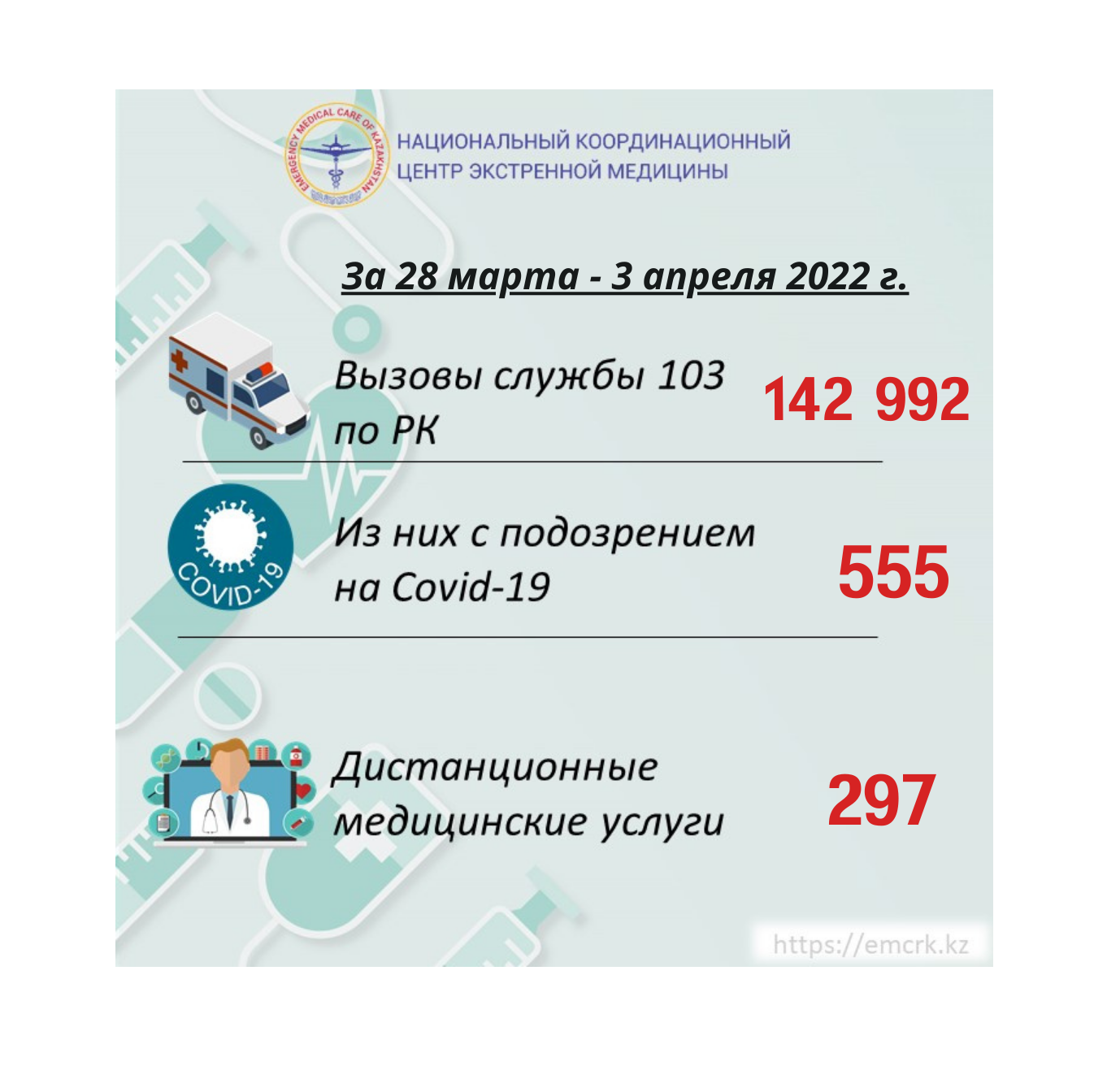 Оказание экстренной медицинской помощи в форме медицинской авиации по Республике Казахстан за 28 марта - 3 апреля 2022 года