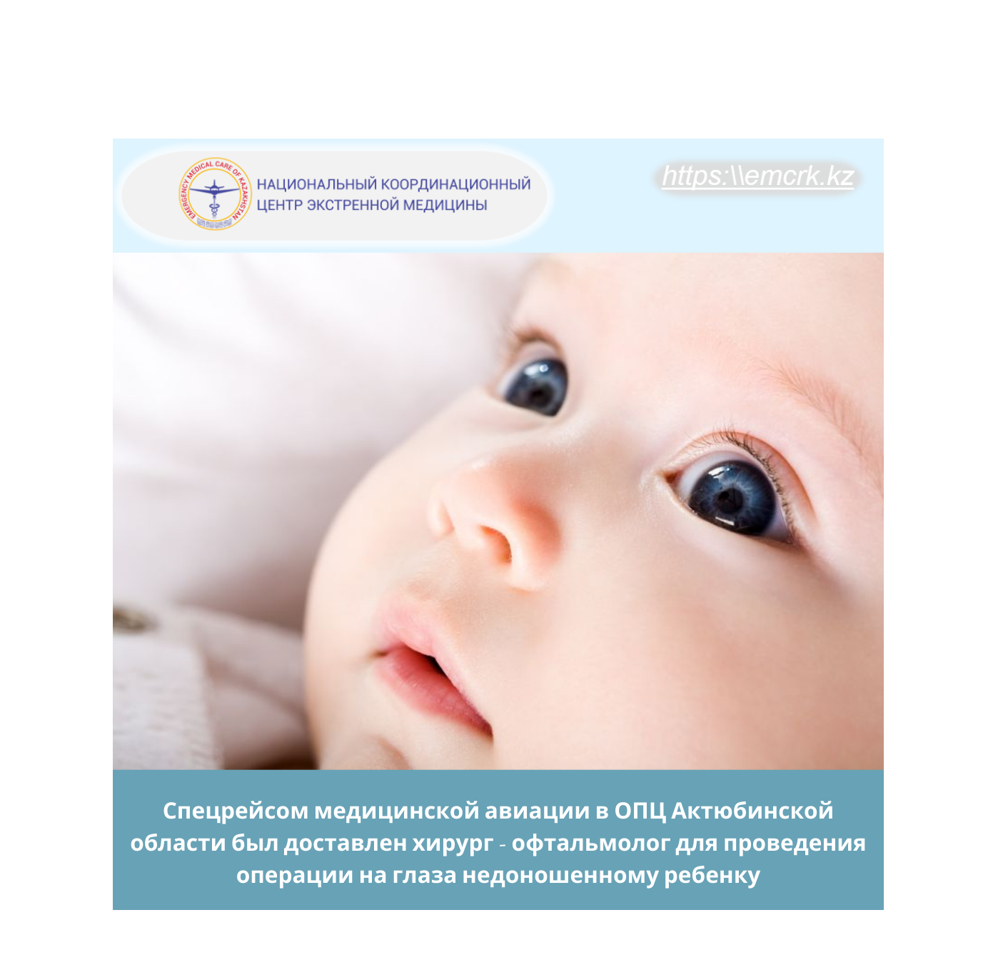Спецрейсом медицинской авиации в ОПЦ Актюбинской области был доставлен хирург - офтальмолог для проведения операции на глаза недоношенному ребенку