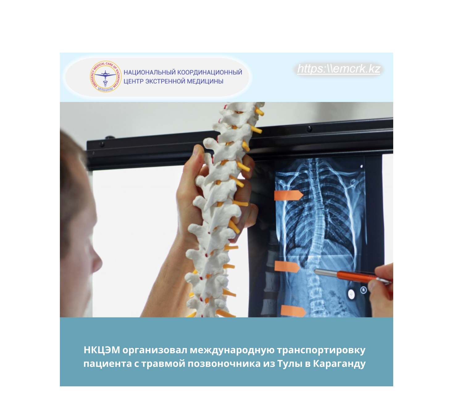 НКЦЭМ организовал международную транспортировку пациента с травмой позвоночника из Тулы в Караганду