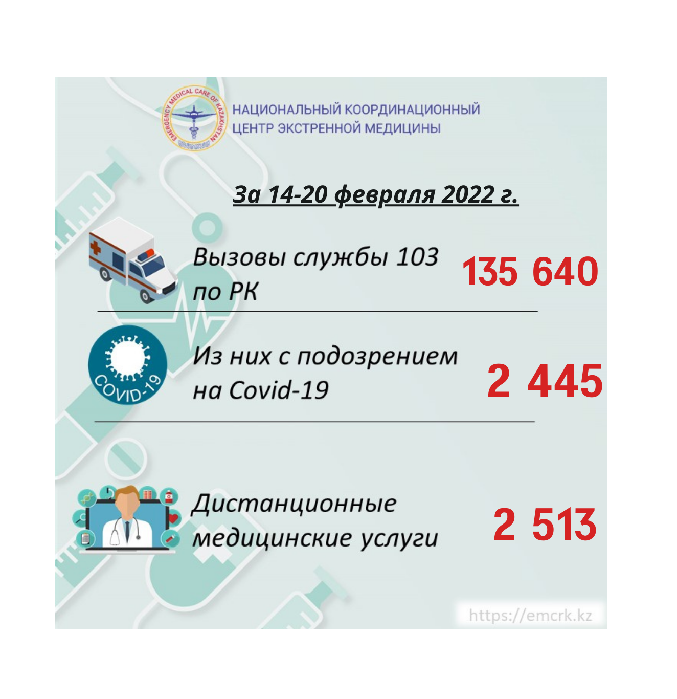 Оказание экстренной медицинской помощи в форме медицинской авиации по Республике Казахстан за 14 - 20 февраля 2022 года