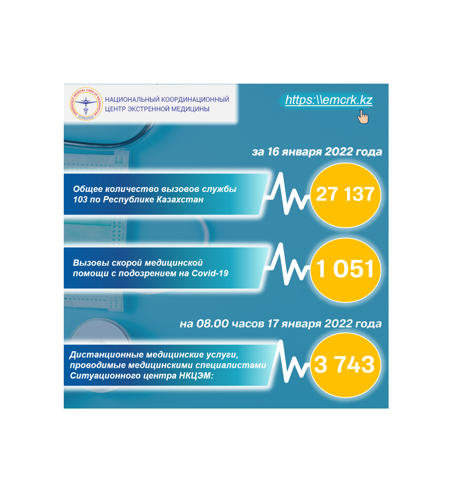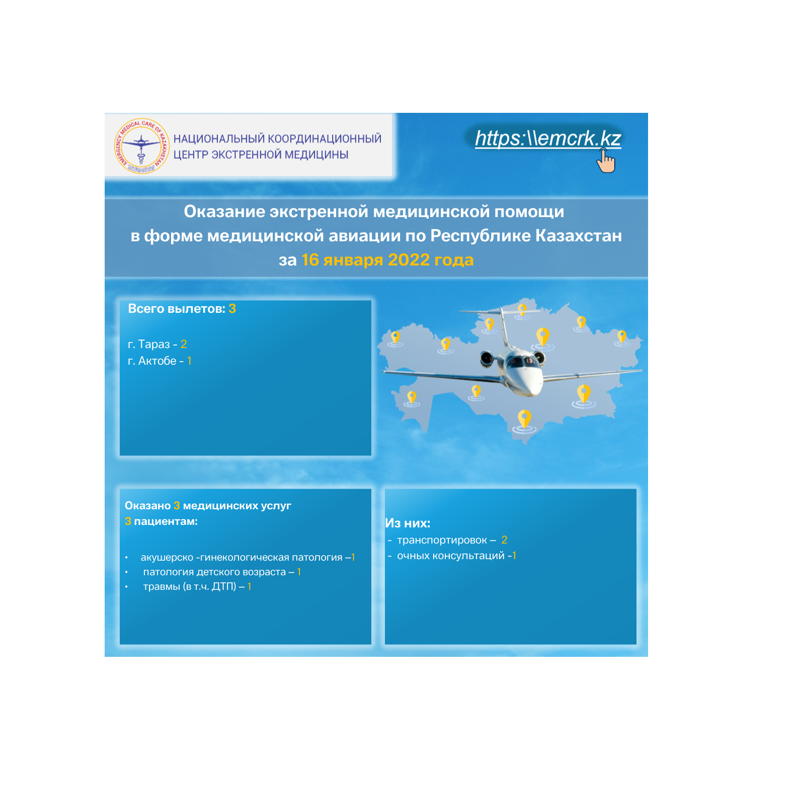 Оказание экстренной медицинской помощи в форме медицинской авиации по Республике Казахстан за 16 января 2022 года