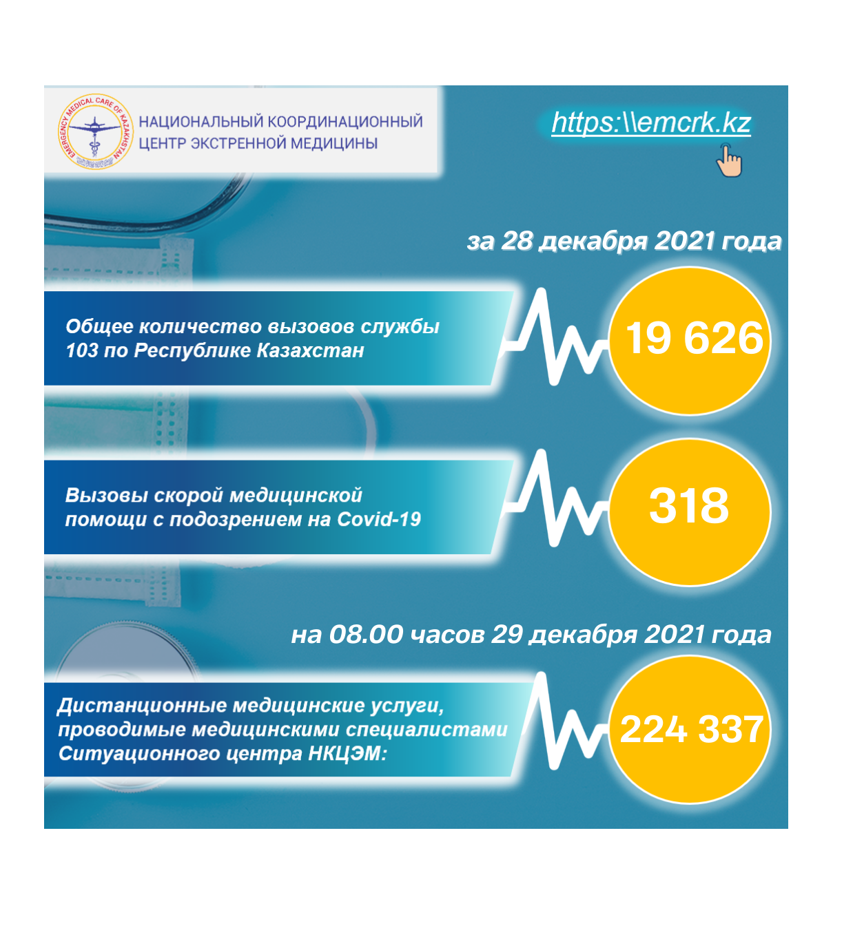 Оказание экстренной медицинской помощи в форме медицинской авиации по Республике Казахстан за 29 декабря 2021 года.