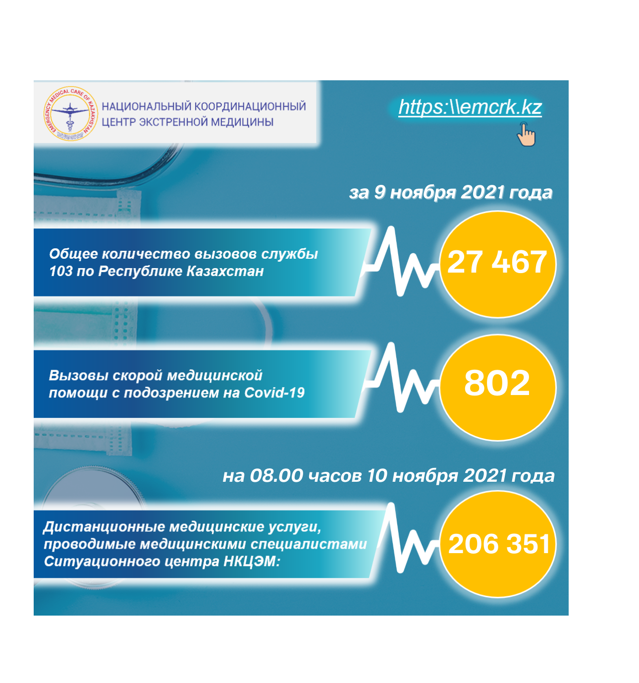 Оказание экстренной медицинской помощи в форме медицинской авиации по Республике Казахстан за 10 ноября 2021 года
