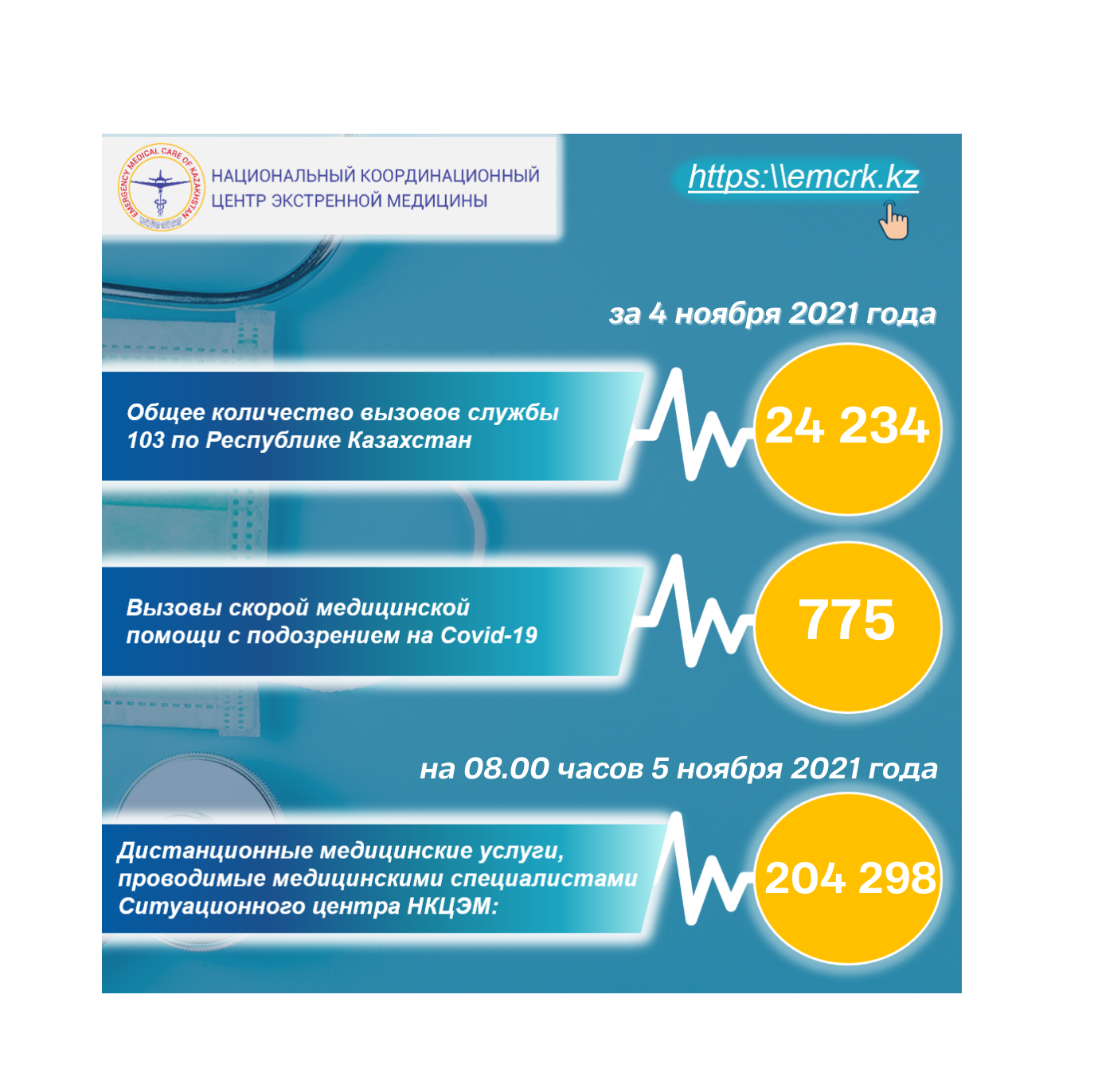 Информация по вызовам службы скорой медицинской помощи, в т.ч. КВИ, а также о дистанционных медицинских услугах