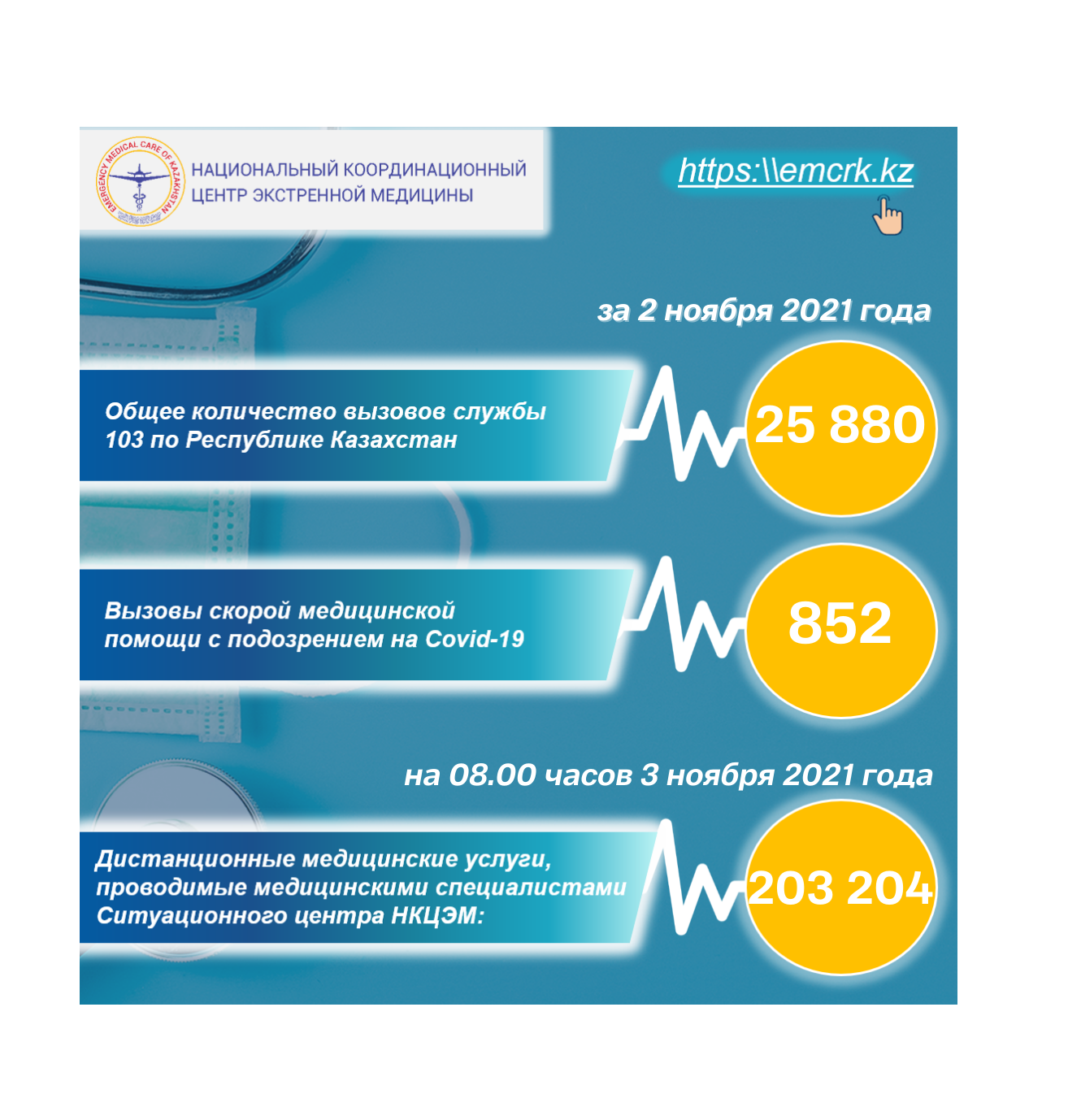 Информация по вызовам службы скорой медицинской помощи, в т.ч. КВИ, а также о дистанционных медицинских услугах
