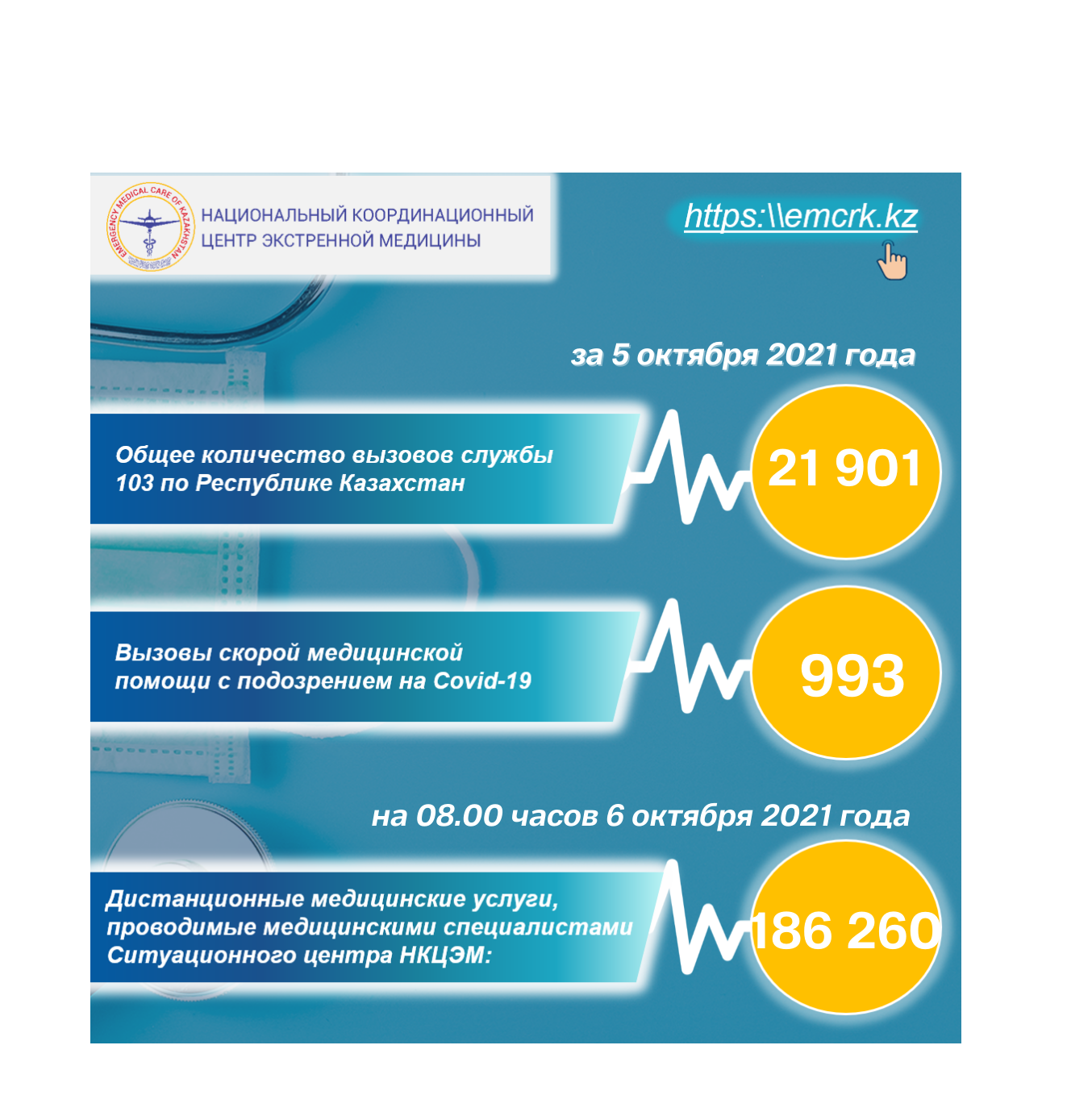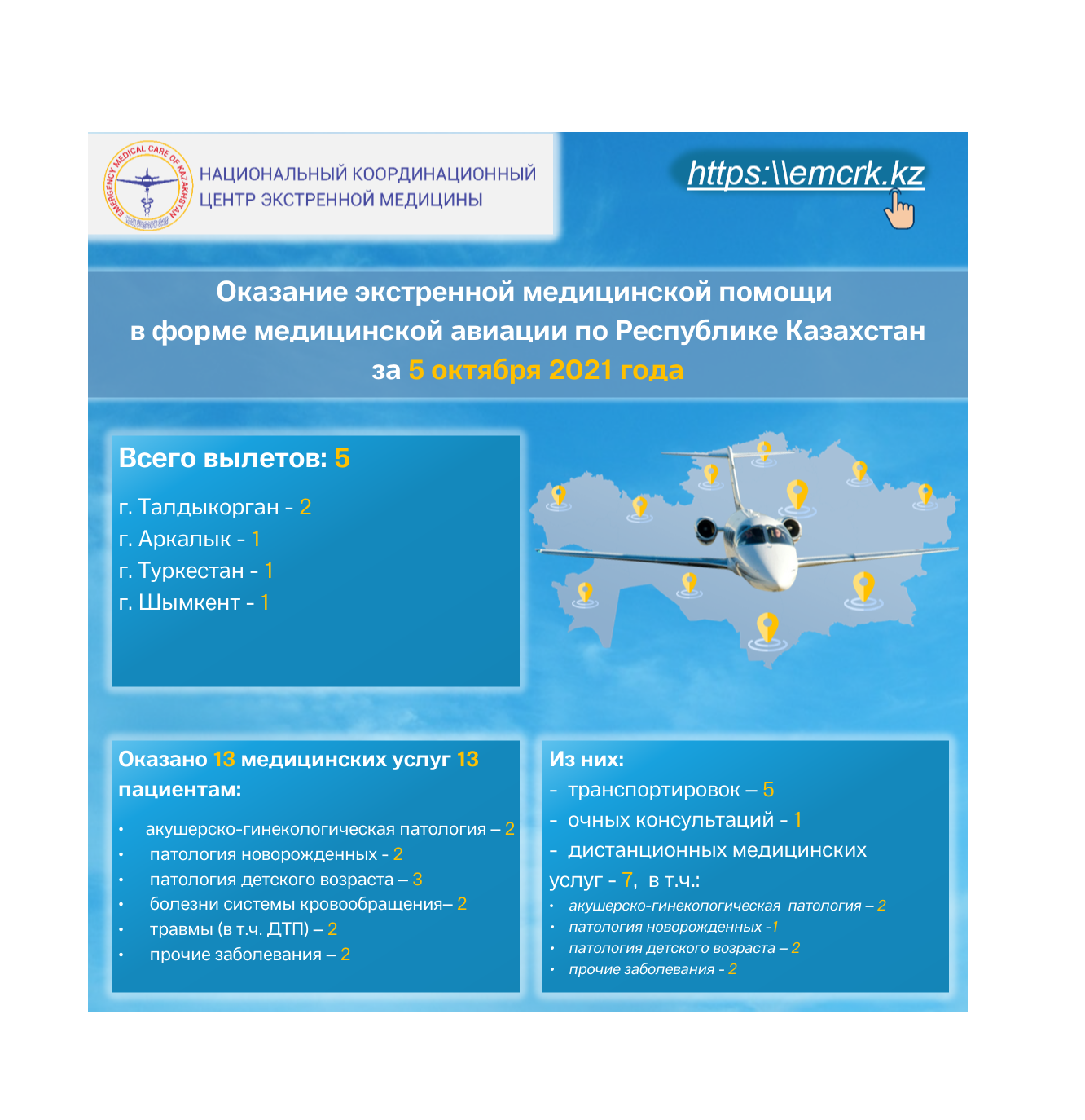 Оказание экстренной медицинской помощи в форме медицинской авиации по Республике Казахстан за 5 октября 2021 года