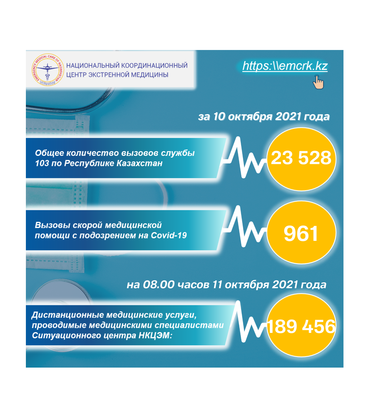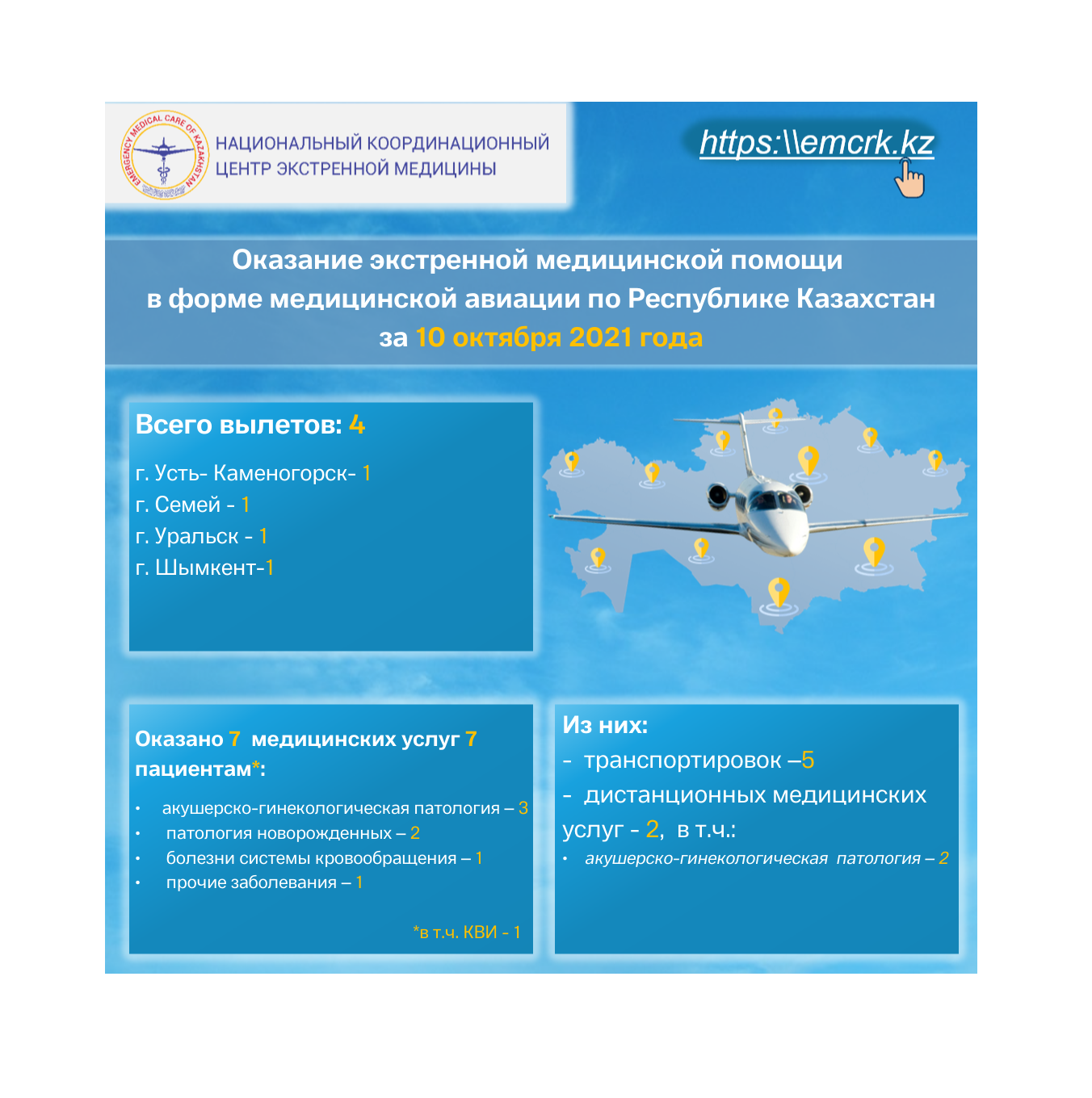 Оказание экстренной медицинской помощи в форме медицинской авиации по Республике Казахстан за 10 октября 2021 года
