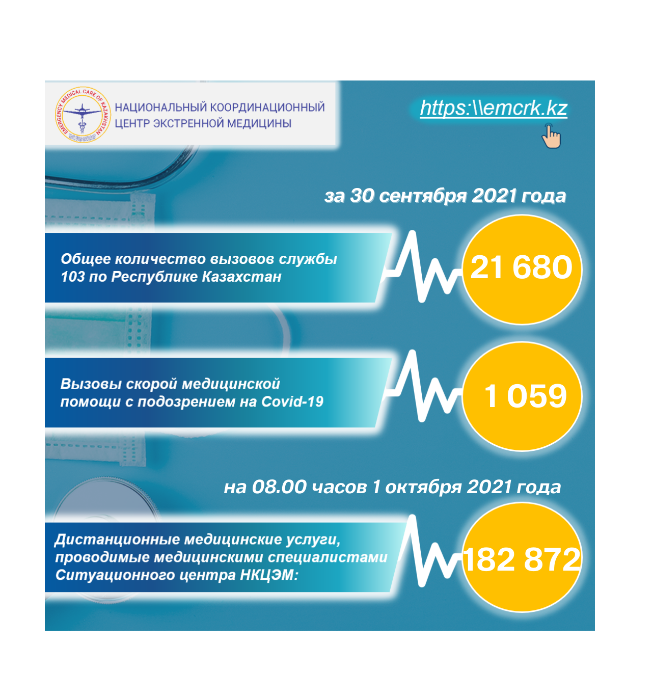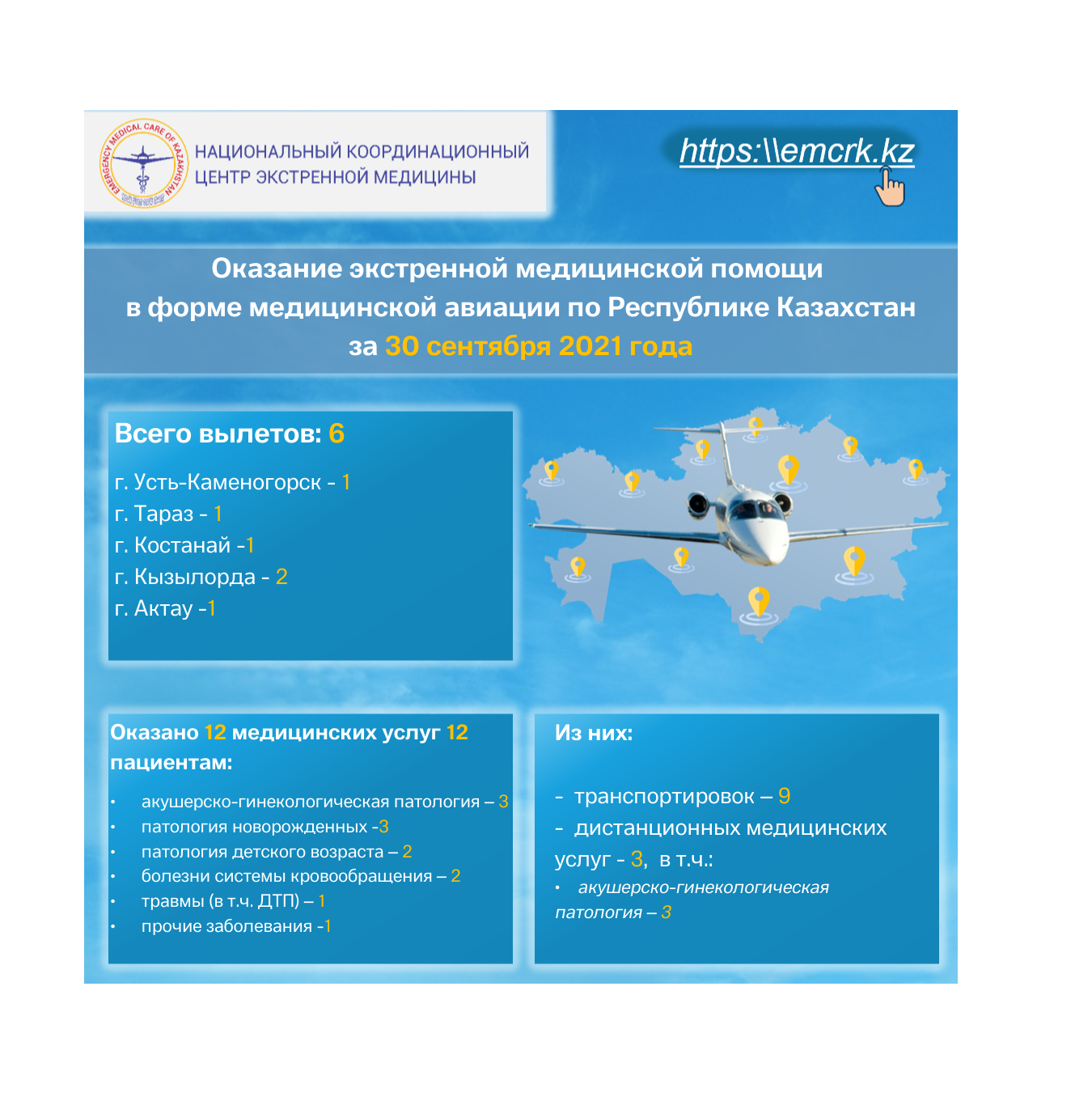 Оказание экстренной медицинской помощи в форме медицинской авиации по Республике Казахстан за 30 сентября 2021 года