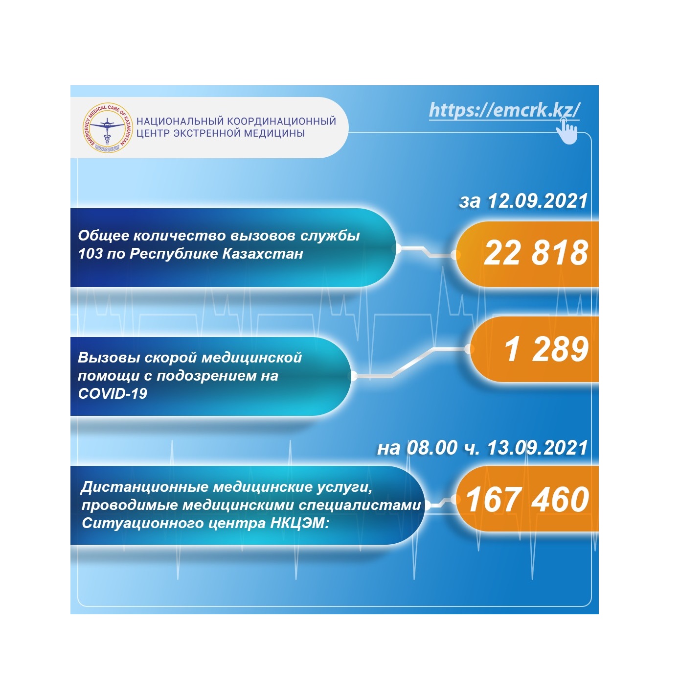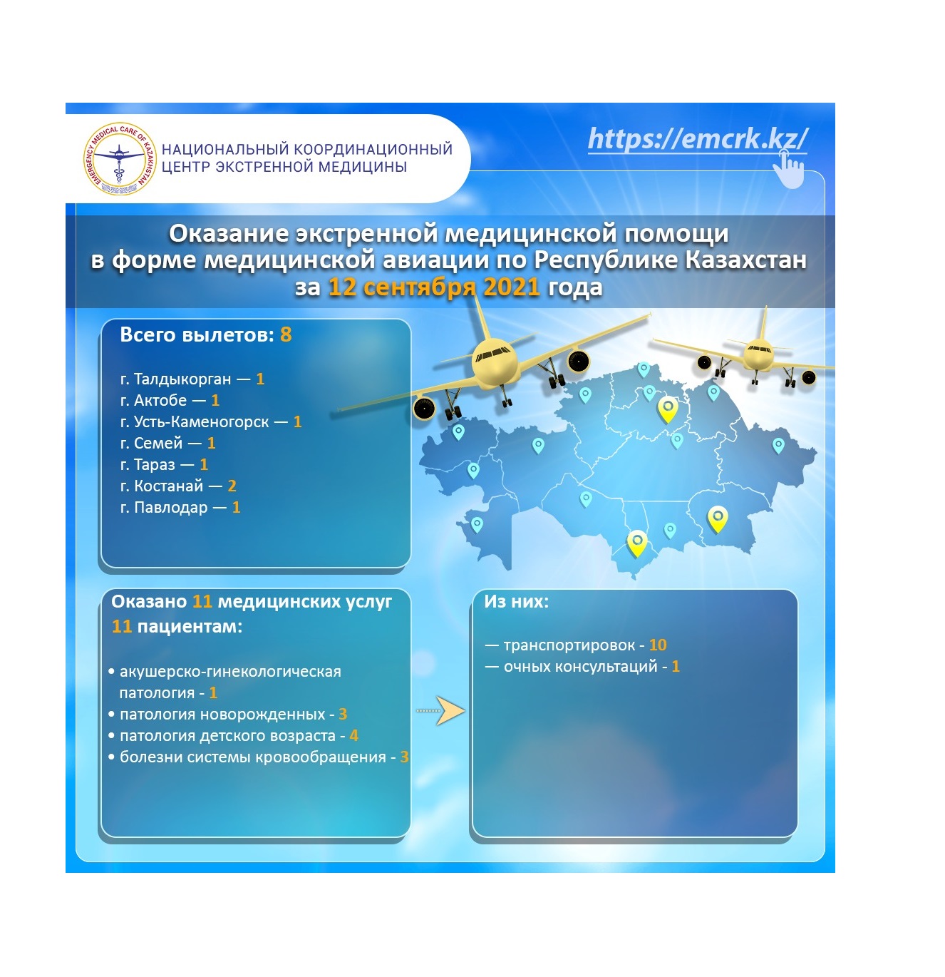 Оказание экстренной медицинской помощи в форме медицинской авиации по Республике Казахстан за 12 сентября 2021 года