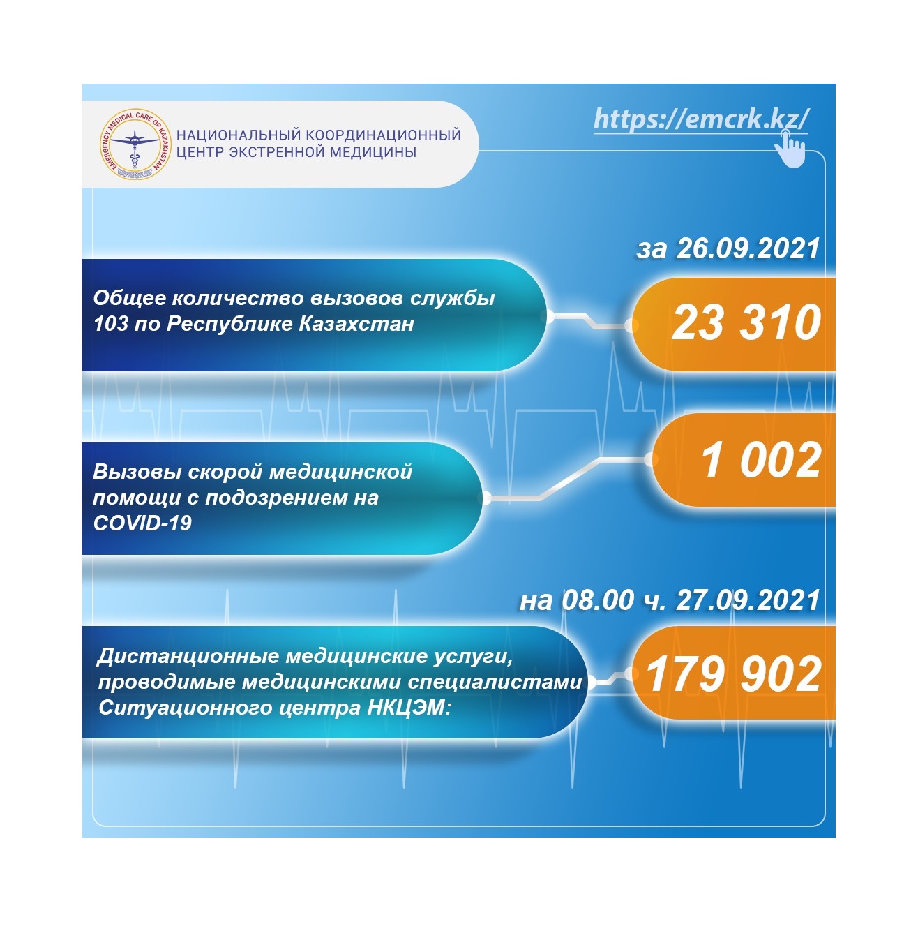 Оказание экстренной медицинской помощи в форме медицинской авиации по Республике Казахстан за 26 сентября 2021 года