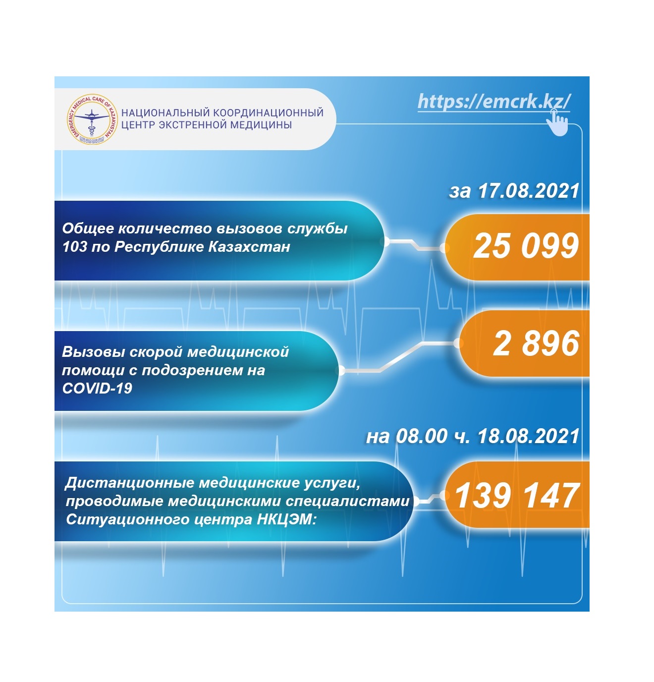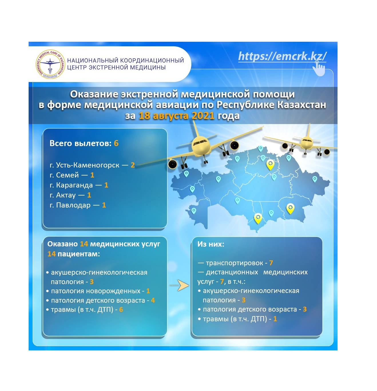 Оказание экстренной медицинской помощи в форме медицинской авиации по Республике Казахстан за 18 августа 2021 года
