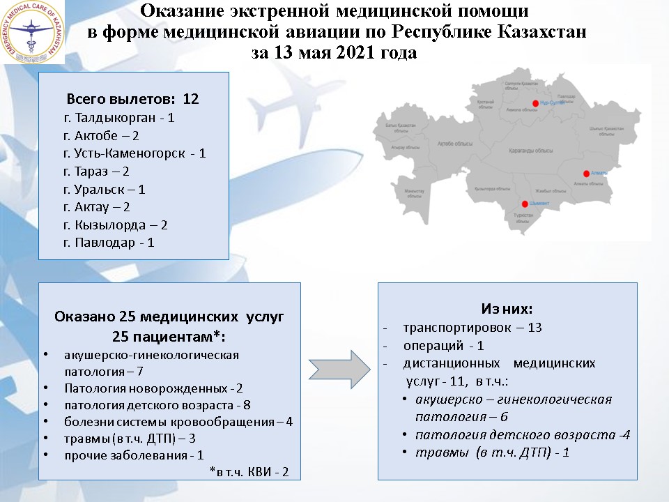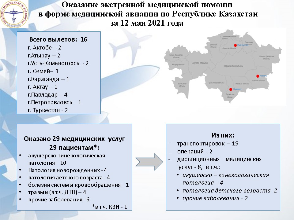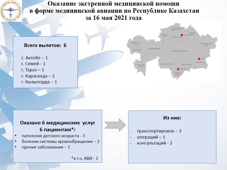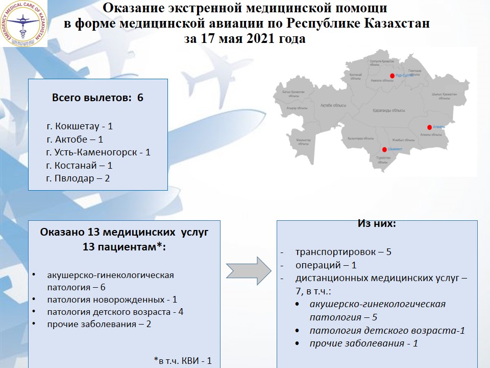 Принимая во внимание, что в сельской больнице отсутствует профильный медицинский специалист, а также в связи с отдаленностью населенного пункта, 16 мая 2021 года для дальнейшего обследования и специализированного лечения пациент транспортирован силами медицинской авиации в многопрофильную больницу им.Х.Ж.Макажанова г.Караганда